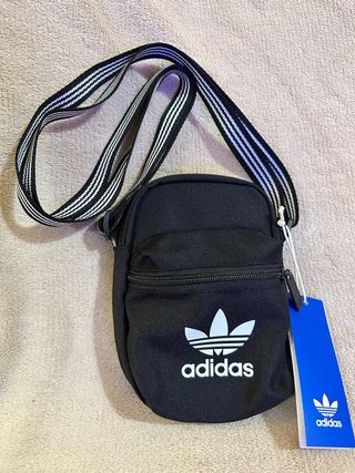 Bolso bandolera Adidas en color negro, con la etiqueta original. - Diseño con las tres franjas icónicas. - Logo de Adidas en la parte frontal.
