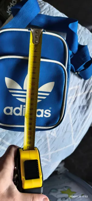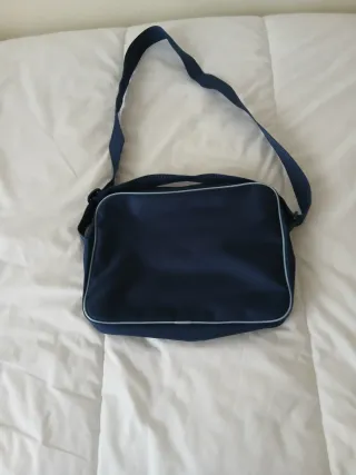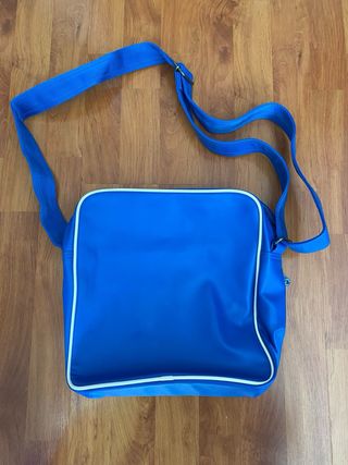 Bolso bandolera Adidas Originals de estilo retro, cómodo y práctico para el día a día. Diseño en azul con detalles en blanco y número frontal. Está usado, pero en buen estado general. Presenta signos normales de uso (ver fotos), sin roturas y con cremalleras funcionando correctamente. Características: • Marca: Adidas Originals • Tipo: Bandolera / bolso de hombro • Color: Azul y blanco • Correa ajustable • Compartimento principal con cremallera • Diseño retro clásico