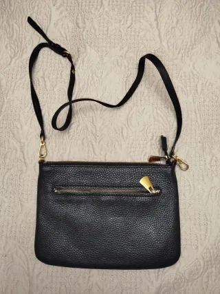 Bolso bandolera de piel con detalles dorados. - Textura granulada. - Cierre de cremallera. - Correa ajustable. Muy poco usado.