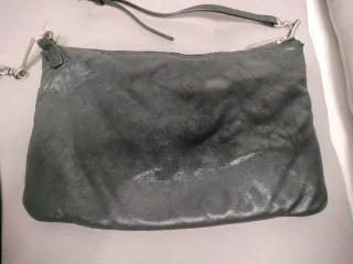 Bolso de mano o bandolera con un diseño moderno y elegante. - Acabado metalizado. - Detalle de logo grabado. - Cierre de cremallera. - Incluye correa ajustable.