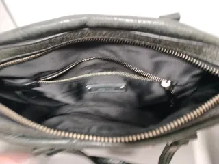 Bolso de mano Bimba y Lola en tonos negro y gris envejecido. Tiene asa para poner como bandolera. Color gris negro envejecido. Asas algo desgastadas pero no peladas