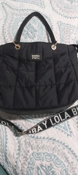 Bolso de mano y bandolera de la marca Bimba y Lola. Poco uso, esta como nuevo. - Material textil tipico de bimba y lola - Cierre con cremallera. - Dos asas cortas y correa bandolera ajustable. - Logo metálico de la marca en la parte frontal.