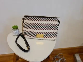 Bolso bandolera con un diseño tejido muy característico. - Cierre de cremallera. - Bolsillo frontal con cremallera. - Correa ajustable.