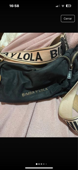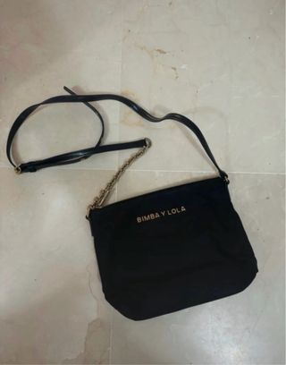 Bolso bandolera de la marca Bimba y Lola. - Color negro. - Placa dorada con logo. - Cierre de cremallera. Le cuesta cerrar un poco a la primera cremallera en la esquina.