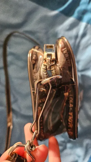Bolso negro bandolera con cadena el dorado en la zona de la cremallera esta un poco desgastado como se puede ver en la foto pero puesto no se nota aun sigue teniendo uso