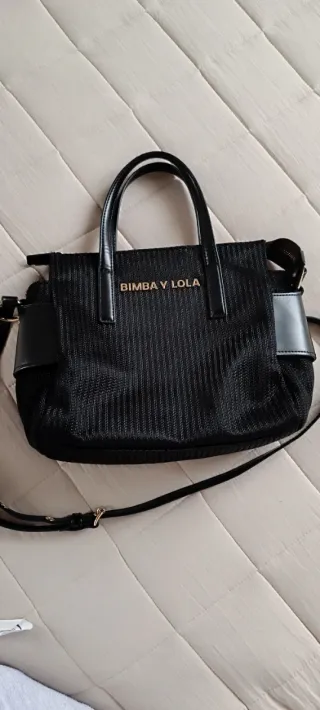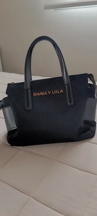 Bolso de mano y bandolera de la marca Bimba y Lola. Poco uso, esta como nuevo. - Material textil tipico de bimba y lola - Cierre con cremallera. - Dos asas cortas y correa bandolera ajustable. - Logo metálico de la marca en la parte frontal.
