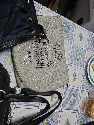 Lote Bolsos... Uno bimba y lola azul marino tipo no bobera "saco", otro bimba y lola bandolera o coger asas o se hombro color negro... Y uno tous bandolera color rosa "esta un poco quitado color de estar guardado saco" me fije ahora, y de regalo uno nuevo bandolera color gris y brilli brilli con un búho... Lote entero 40€ todos Trato en mano No cambios