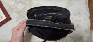 Precioso bolso de piel negra. Es elegante y versátil, ideal para cualquier ocasión. - Asa de mano y asa bandolera. - Cierre de cremallera. - Detalles dorados.