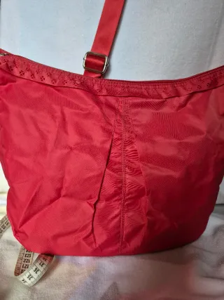 Bolso bandolera de color rojo con correa ajustable. Muy cómodo para trabajo/viaje, cabe perfectamente una tablet, con múltiples compartimentos con cremallera, base reforzada en polipropileno. - Cierre principal con cremallera. - Cierre trasero con cremallera. - Bolsillo frontal con cremallera. - Correa de tela. - Cremalleras bolsillos laterales para termo o botellas de agua.