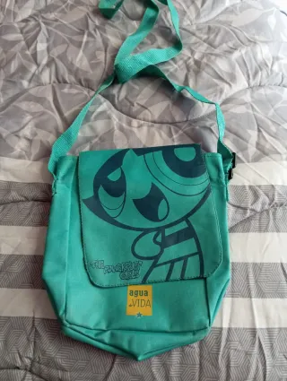 Bandolera con diseño de Las Super Nenas (The Powerpuff Girls). - Estampado frontal de personaje. - Cierre de solapa. - Correa ajustable. _Un poco roto en la correa.