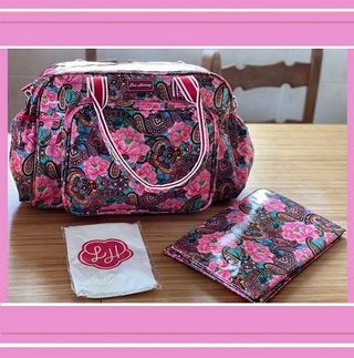 Bolsa de viaje *NUEVA* con un llamativo estampado floral y paisley. Ideal para accesorios de bebé, gimnasio, maternidad y hospital. Características: - Diseño estampado de peonías y cachemira. - Múltiples bolsillos para una organización óptima. - Incluye bolsa guardapolvos, llavero y pequeña almohadilla impermeable (cambiador). - 2 asas y correa ajustable y desmontable. - Diseño vibrante y colorido. - Espacio para botellas de agua o biberones. - Dimensiones: Alto 30,48 cm x Ancho 40,64 cm x Fondo 15,24 cm. # Maleta de mano cabina Vueling, transporte, bandolera, multiusos, bolso boho chic