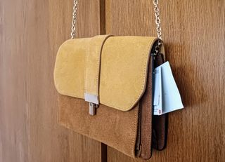Precioso bolso bandolera de color amarillo. Está en muy buen estado. - Diseño elegante y moderno. - Asa larga ajustable para llevarlo al hombro o cruzado. - Cierre de solapa con detalle decorativo.