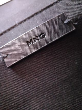 Bolso bandolera de Mango, color negro. Está en buenas condiciones. - Asa larga regulable. - Bolsillo frontal con cremallera. - Cierre con velcro