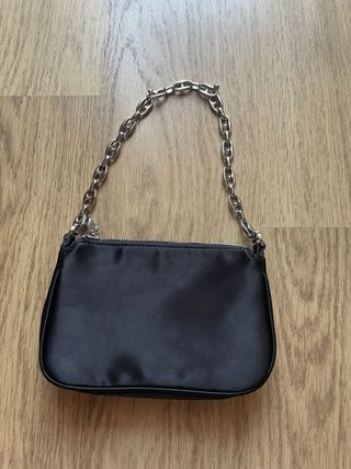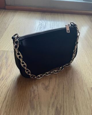 Precioso bolso bandolera de color negro. Es pequeño y elegante. - Asa de cadena metálica. - Cierre de cremallera.