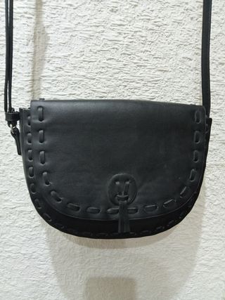 Precioso bolso bandolera de la marca MANGO, en color negro. Es de tamaño pequeño y tiene un diseño elegante y sencillo. - Asa ajustable para llevarlo al hombro o en la mano. - Cierre de cremallera. - Bolsillo interior. - 3 apartados, el central cierra con cremallera y los 2 exteriores con imán - 1 bolsillo pequeño en la cara interior, que cierra con cremallera con detalle en plata