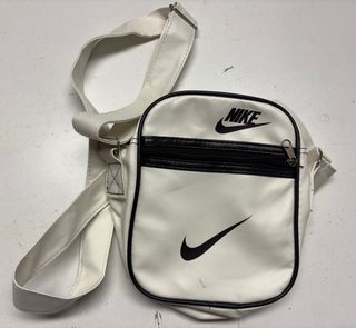Bandolera Nike original blanco Bandolera original de Nike en color blanco con logo negro. Muy cómoda y ligera, perfecta para llevar móvil, cartera, llaves y lo esencial del día a día. Tiene varios bolsillos con cremallera y correa ajustable para llevarla al hombro o cruzada. Diseño deportivo y moderno. En buen estado. Ideal para uso diario, viajes o deporte.