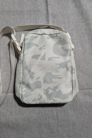 Bandolera Nike en color blanco con estampado en tonos grises. Diseño compacto y muy práctico, perfecta para llevar lo esencial de forma cómoda y segura. 🎒 Talla única 🤍 Color blanco con estampado gris 📱 Compartimento principal con cremallera 🔒 Bolsillo frontal adicional 🎽 Correa ajustable para mayor comodidad Ideal para el día a día, viajes, festivales o looks urbanos. Ligera, funcional y fácil de combinar. Se envía bien protegida.