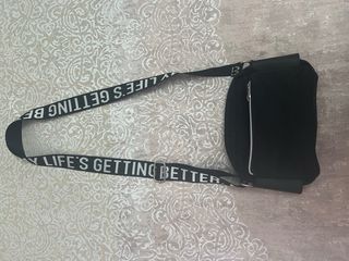 Bolso práctico para el día a día con un diseño moderno. - Correa ajustable con texto. - Cierre superior. - Compartimento principal espacioso.