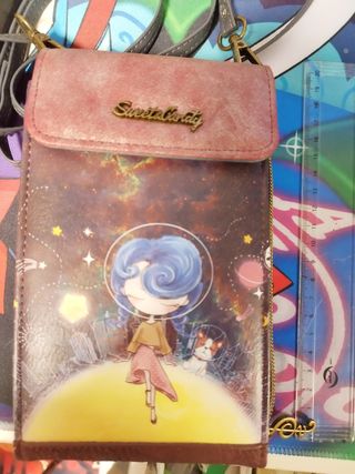 Monedero de la marca Sweet Candy con un diseño encantador. - Estampado frontal con una niña y molinos de viento. - Base con textura tejida. - Cierre de cremallera.
