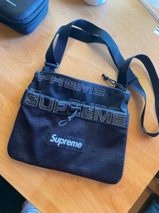 Vendo bolso bandolera Supreme. Está en muy buen estado. - Bolsillo frontal con red. - Cierre de cordón en la parte superior. - Correa ajustable para el hombro.
