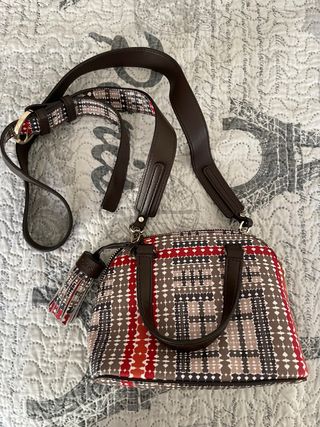 Bolso bandolera de la marca Tous en buen estado. - Color principal marrón. - Detalle en color rojo. - Cierre con hebilla dorada.