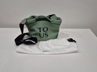 Bolso Tous en color verde, sin estrenar. Incluye su bolsa guardapolvo. Bolso capazo pequeño TOUS Balloon. Cierre de cremallera. Bolsillo interior abierto. Capazo con asas fijas de mano y asa bandolera ajustable y extraíble con ganchos. Medidas (alto x ancho x fondo): 18 x 29 x 13 cm.