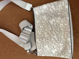 Original, como nueva, apenas usada. Bandolera TOUS KAOS Flat en color blanco con osos en gris. Medidas: ancho 26 , alto 16 y fondo 6,5