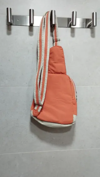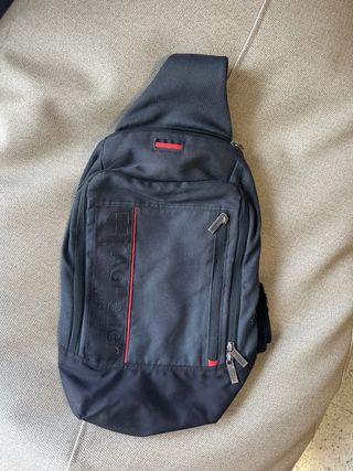 Bandolera pequeña tipo utility, ideal para viajes o uso diario. Se encuentra como nueva. - Diseño moderno con múltiples compartimentos. - Correa ajustable para mayor comodidad. - Cierre de cremallera seguro.