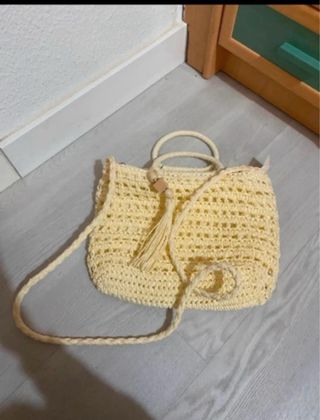 PRECIO NEGOCIABLE Precioso bolso de crochet en color beige. Es ligero y perfecto para el verano. - Asa de mano y asa larga para llevarlo al hombro o cruzado. - Diseño de red calada. Bolso ideal para verano. Estilo esparto, yute. MEDIDAS: - alto: 27 cm - ancho: 28 cm - fondo: 11 cm