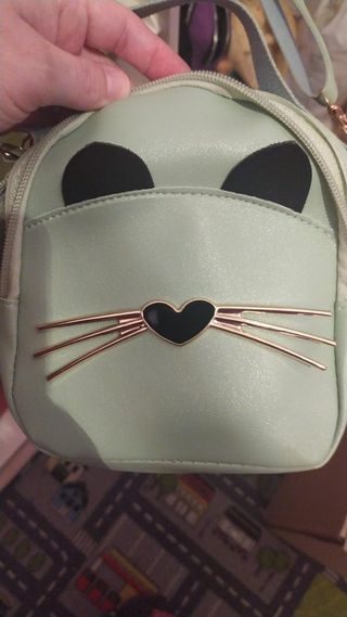 Bolso bandolera con diseño de gatito. Se puede poner tanto como mochila como bandolera. Esta sin estrenar. Tamaño 17 * 5 * 14 cm y pesa 130g. Se puede enviar.
