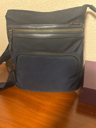 Bolso bandolera de Emporio Armani. - Correa ajustable con logo. - Bolsillo frontal con cremallera. Está totalmente nuevo con etiqueta no lo he usado ni una sola vez y es original.