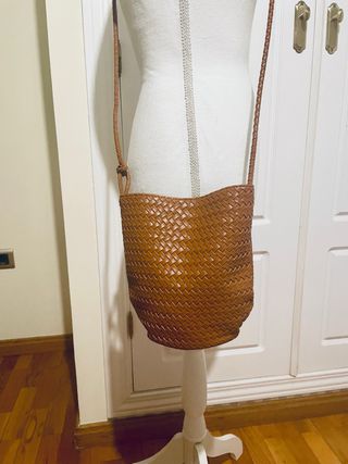 Bolso de bandolera con un diseño moderno y elegante. - Acabado trenzado en la parte frontal. - Cierre con hebilla. - Correa ajustable para llevar al hombro o cruzado. - 20 cm x 28 cm