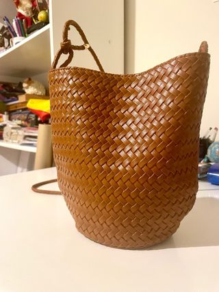 Bolso tipo cubo con un diseño trenzado, completamente nuevo Bolso cubo trenzado, bandolera ,con clip para cerrar y nudo ajustable en la cuerda, 2 bolsillos interiores Medidas 22 cm x 22 cm y base 10 cm