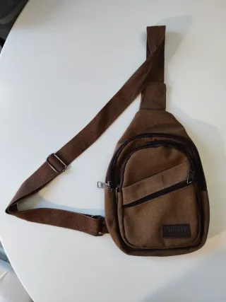 Mochila bandolera de estilo casual con correa ajustable y 4 bolsillos de los cuales 3 con cierre de cremallera. Material muy resistente. Está como nueva usado muy poco