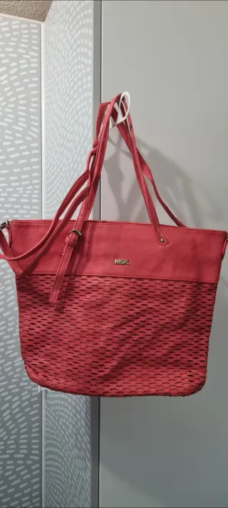 Bolso de la marca Misako en color coral. Se puede llevar al hombro o cruzado como bandolera. - Diseño con parte inferior calada. - Asa ajustable para bandolera.
