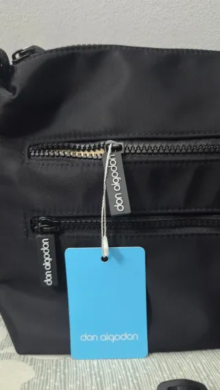 Bolso de la marca Don Algodón en color negro. Don Algodón Zita, Bolso Bandolera Mujer, 30 x 9.5 x 19 cm Original y totalmente sin estrenar, con etiqueta. - Diseño elegante y funcional. - Medidas 30x9.5x19cm, fabricado en nylon e interior de poliéster. - Correa ajustable para mayor comodidad. - Múltiples compartimentos para organizar tus pertenencias. Si estas en Madrid, puedo entregsr en mano si llegamos a un acuerdo, sino, puedo entregar por mensajería de la app.