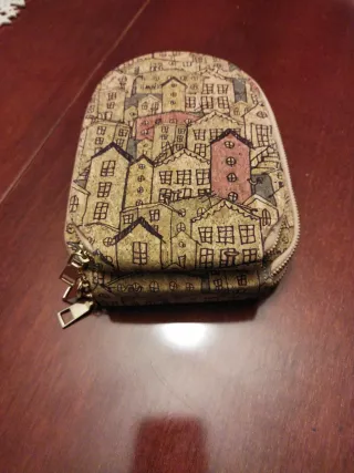 Monedero de la marca Sweet Candy con un diseño encantador. - Estampado frontal con una niña y molinos de viento. - Base con textura tejida. - Cierre de cremallera.
