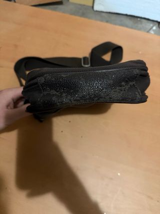 Vendo una bandolera pequeña, ideal para llevar lo esencial. - Está en buen estado. - Tiene un compartimento principal con cierre de cremallera y un bolsillo frontal más pequeño, también con cremallera. - La correa es ajustable.