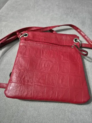 Bandolera de la marca Parfois en color rojo. - 4 Compartimentos - Bolsillo trasero sin cremallera. - Bolsillo interno de cremallera - Correa ajustable. - Medidas: 24 cm de ancho X 19.5 de ancho - Cremalleras en excelente estado .
