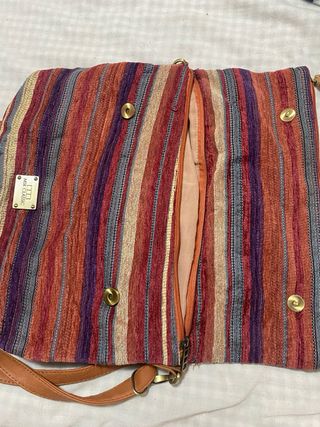 Bolso bandolera con correa ajustable. Cierres con cremallera. En perfecto estado.