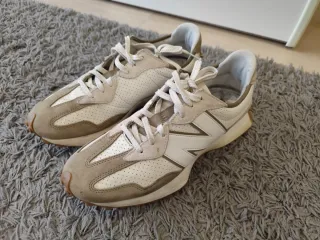 Zapatillas New Balance 327 en perfecto estado, casi nuevas. Combinan tonos beige y blanco para un look moderno y versátil. - Diseño deportivo y casual. - Materiales de calidad.