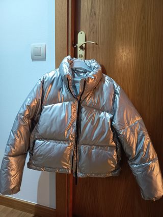 Chaqueta plateada para adolecente. - Cierre de cremallera. - Cuello alto.