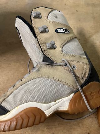 Botas de snowboard de la marca Heelside en tonos beige y negro. Perfectas para snowboard. - Cierre con cordones. - Talla 42. - Suela de goma.
