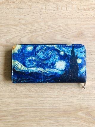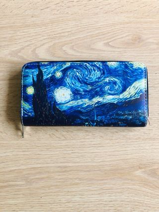 Cartera monedero con diseño inspirado en La Noche Estrellada de Van Gogh. - Diseño artístico. - Cierre de cremallera. - Interior con tarjetero y monedero.