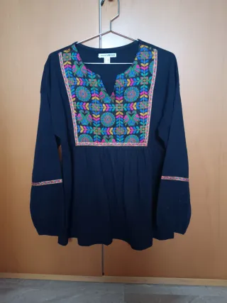 Jersey de manga larga con un bonito bordado en la parte delantera y en los puños. - Diseño con escote en pico. - Detalle de bordado multicolor. - Puños con banda bordada.