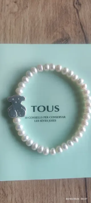 Elegante pulsera de la marca Tous, elaborada con perlas y un charm de osito. - Perlas de agua dulce. - Charm de osito en plata. - Diseño elástico para mayor comodidad.