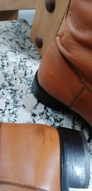 Elegantes botas altas de cuero en un cálido tono marrón. - Material: Cuero genuino. - Diseño: Caña alta. - Color: Marrón. Algún defecto de uso que se aprecia en las fotos. Suela nueva cambiada hace poco