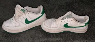 Zapatillas Nike Air Force 1 con detalles en verde. - Diseño clásico. - Combinación de blanco y verde.