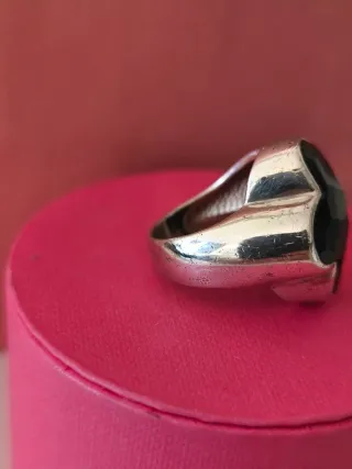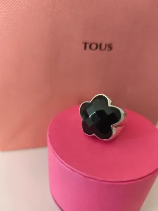 Anillo Tous con diseño de flor y piedra de ónix. - Diseño de flor. - Piedra central de ónix. - Montura de plata. La Plata tiene marquitas de uso. El ónix está bien