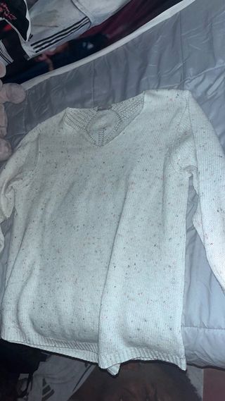 Jersey de punto fino con un diseño moteado. - Cuello en V. - Manga larga. - Tejido con pequeños detalles de color.